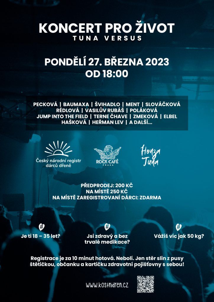 Koncert bude velkou beneficí, během které bez nároku na honorář vystoupí a dárcovství kostní dřeně/ krvetvorných buněk podpoří operní pěvkyně Dagmar Pecková se studentským sborem Gut!, kapely Švihadlo, Terne Čhave, Vasilův Rubáš, Jump Into The Field, muzikanti Xavier Baumaxa, Barbora Poláková, Anna Julie Slováčková, Lucie Redlová, Bára Zmeková a mnozí další. O mluvené slovo se postarají stand up komici Adéla Elbel, Kateřina Hašková, Dominik Heřman Lev, youtubeři MenT, Tomáš Šedivý, Rady, Janek Rubeš, biskup Církve československé husitské Pavel Pechanec a další. Společně s primářem Pavlem Jindrou dorazí i patron registru herec Ondřej Vetchý. Benefici na dálku podpoří i zpěvák Tomáš Klus, který s registrem dlouhodobě spolupracuje. Koncert pro život bude moderovat Jan Tuna, který s nápadem přišel a společně se svým youtubovým pořadem Tuna versus, Českým národním registrem dárců dřeně a Rock Café ho pořádá.