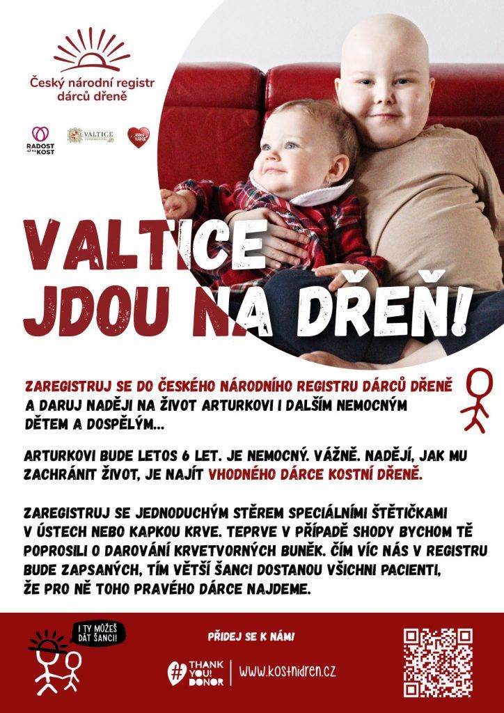 Zaregistrujte se do Českého národního registru dárců dřeně a darujte naději na život Arturkovi i dalším nemocným dětem a dospělým. Která města a firmy se přidaly do zimní náborové vlny? Naše mobilní jednotka se chystá třeba do Valtic, Nymburka, Bechyně nebo Jihlavy.