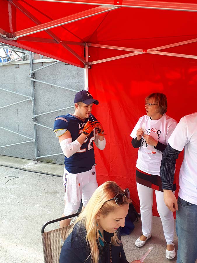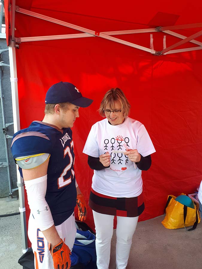 V neděli odstartovala 1. liga amerického fotbalu v Česku zápasem Prague Lions proti Aquaponik Ostrava Steelers. Kromě povzbuzování svých týmů se mohli fanoušci i hráči zaregistrovat do Českého národního registru dárců dřeně (ČNRDD). Toto netradiční propojení vzniklo na popud bývalého hráče Nikity Maximova, který si prošel léčbou leukémie.