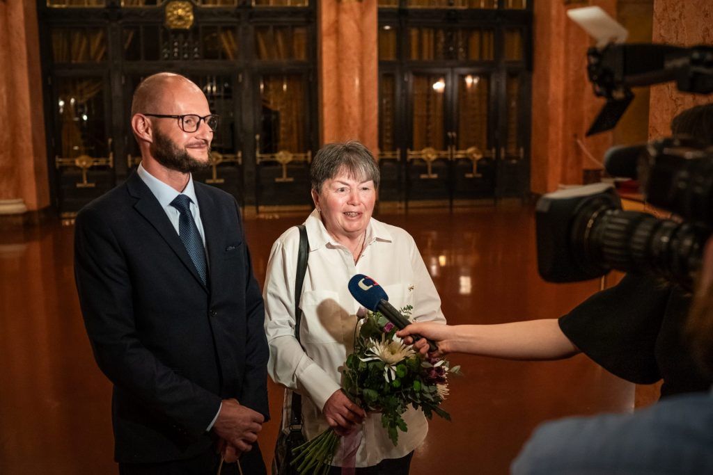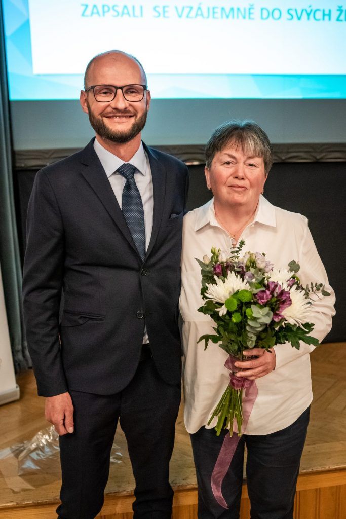 Nejemotivnější částí večera byl však bezesporu moment, kdy se poprvé setkal vyléčený pacient Tomáš Chlum se svou dárkyní Ivanou Hládkovou.