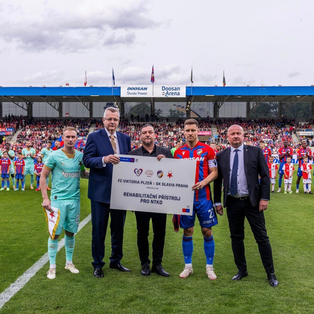 Dnešní utkání mezi Viktorií Plzeň a Slavií Praha mělo charitativní podtext. Oba kluby podpořily společně naši Nadaci pro transplantace kostní dřeně šekem na pořízení rehabilitačního přístroje, který pomůže pacientům po transplantaci. Děkujeme!